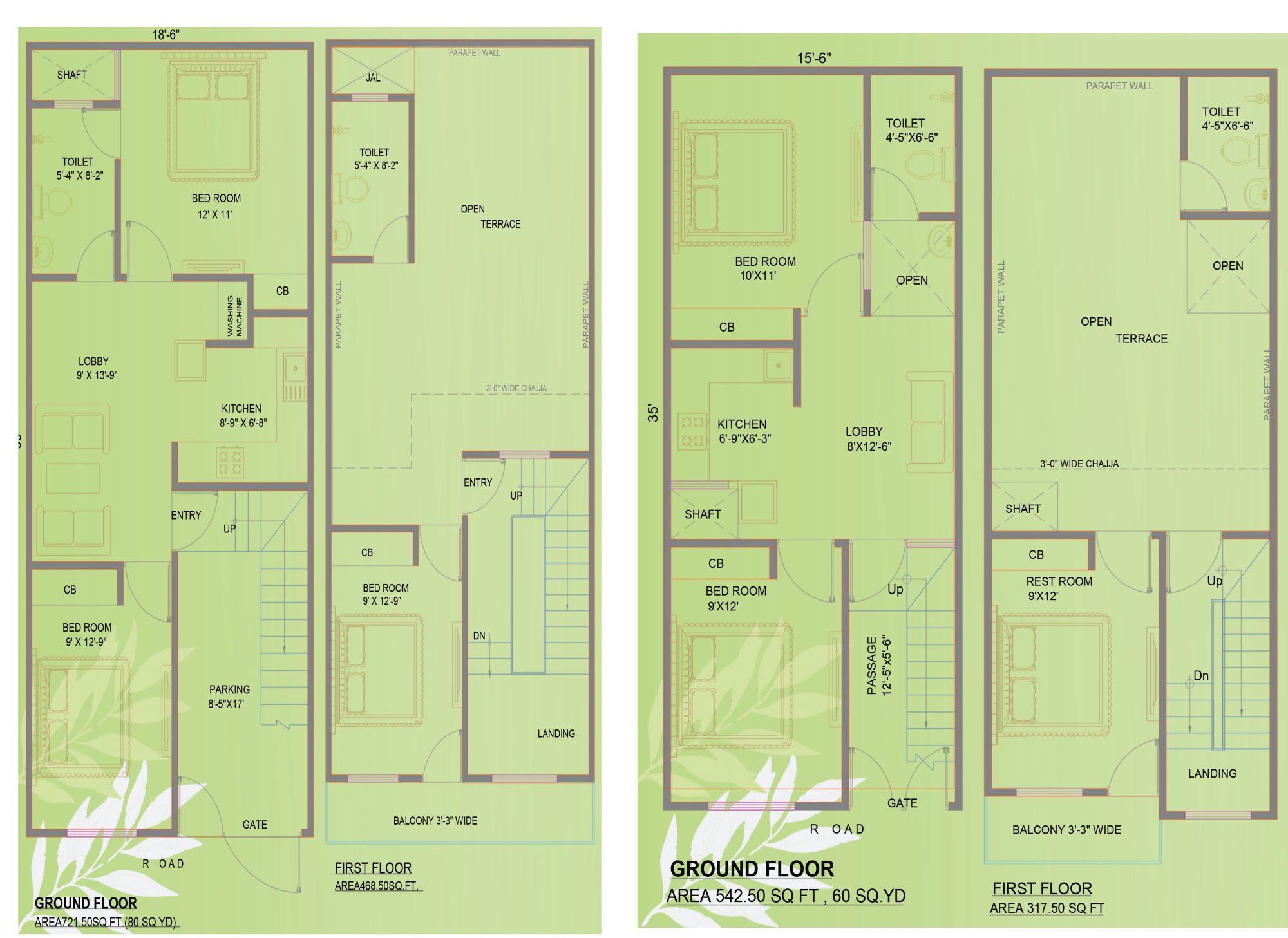 60 Sq.Yd. – 3BHK- 15’6″ x 35′